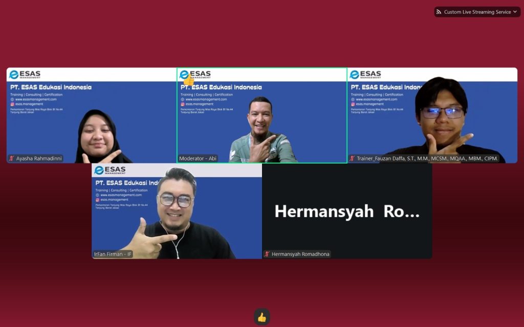 Sebelum Pelatihan dimulai, Abi menginformasikan ESAS Management yang dinaungi oleh PT ESAS Edukasi Indonesia merupakan lembaga pendidikan, pelatihan dan sertifikasi untuk menciptakan alumni yang kompeten di bidangnya.kemudian Abi juga menjelaskan bahwa setelah mengikuti pelatihan ini, peserta akan mendapatkan 2 sertifikat, yaitu sertifikat kehadiran dan sertifikat kompetensi.