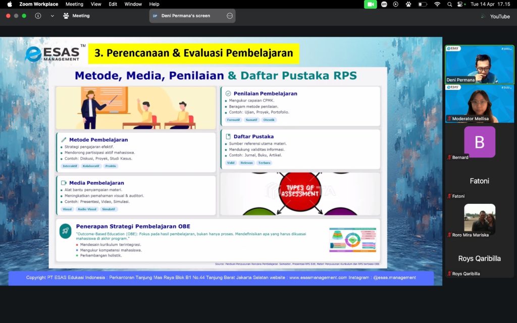 Jakarta, 14 April 2026 Esas management sukses menyelenggarakan pelatihan Certified Academic Lecturer (CAL). Pelatihan tersebut diselenggarakan pada hari Selasa, 14 April 2026 pukul 16.00 s.d 18.00 WIB yang dilaksanakan melalui platform zoom meeting dan Youtube ESAS Management serta dihadiri banyak peserta dari berbagai latar belakang dan domisili yang berbeda.